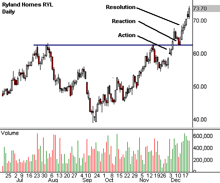 Pēc tam sākas reakcijas fāze. Pārdošanas pieaug un ar to iniciējas korekcija. Jaunie pircēji izmanto to jaunas pozas atvēršanai. Ja viss ir kārtībā, tad otrā rallija rezultātā cena pārvbar maksimumu kurā tā bija uzreiz pēc breikouta. Šī ir atrisinājuma fāze.